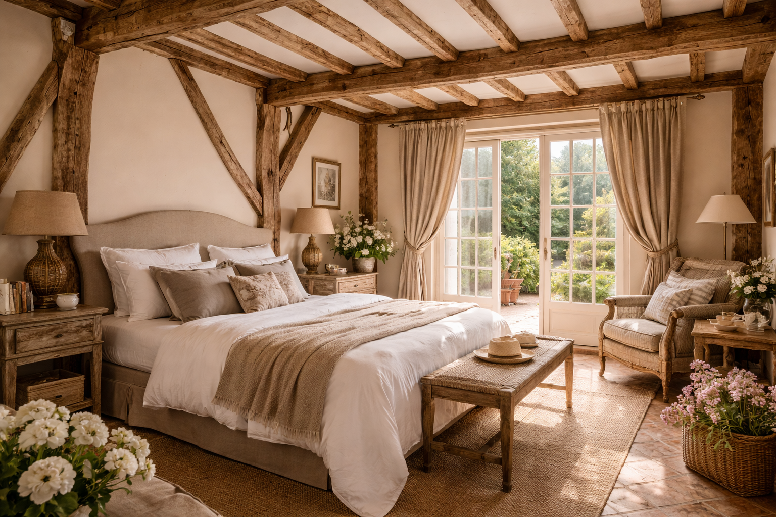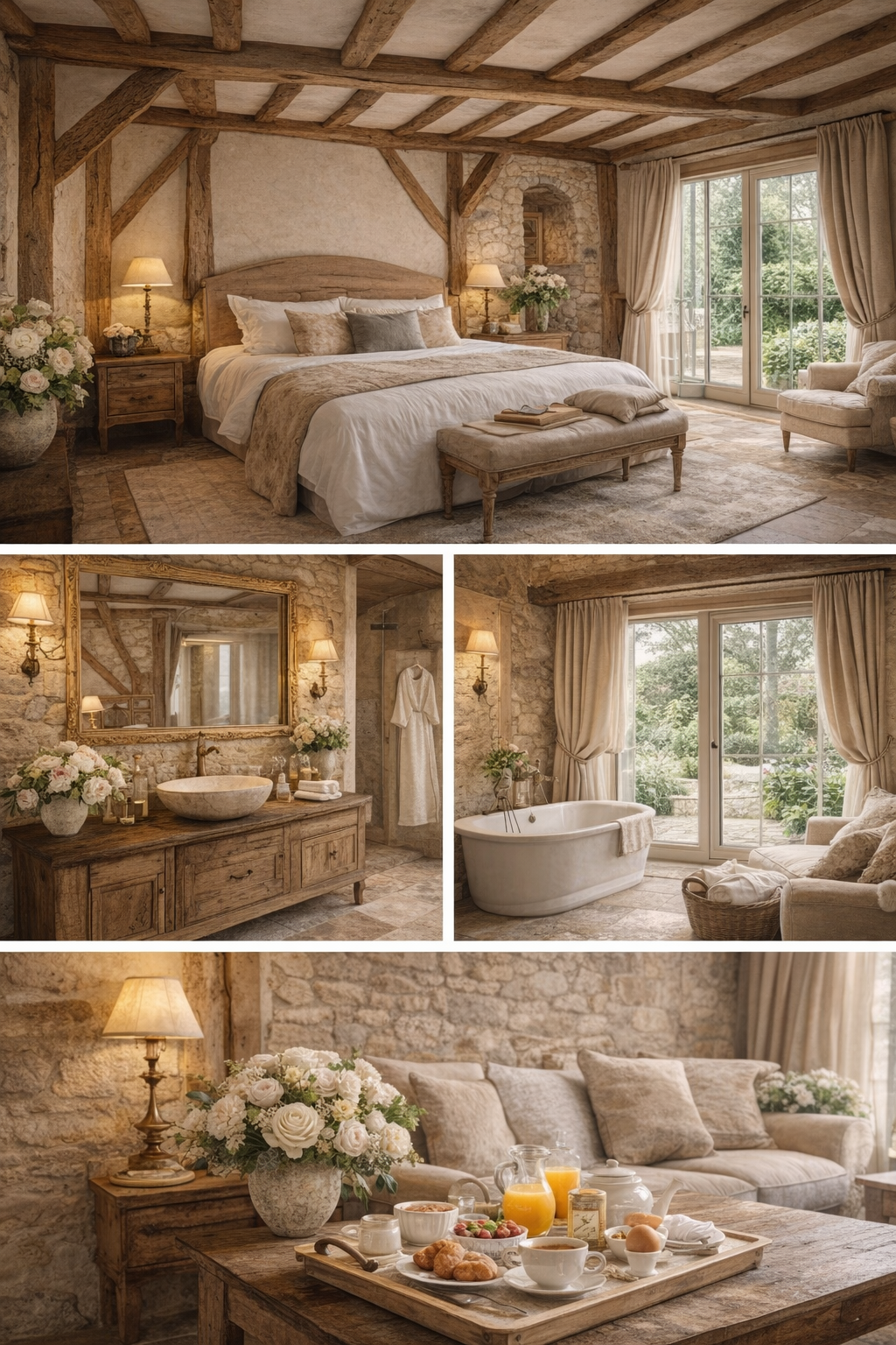 la Chambre Grande Normande incarne l’art de vivre en Normandie.Pierres apparentes, poutres anciennes et matières naturelles créent une atmosphère chaleureuse, sublimée par une décoration élégante et apaisante.